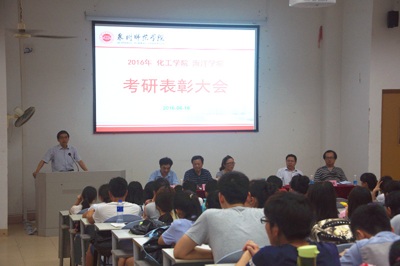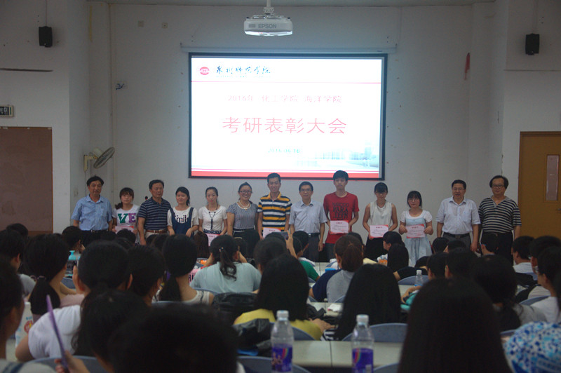 6月16日下午,化工学院和海洋学院召开2016年考研表彰大会。校长李清彪,学生处副处长黄志梅,化工学院院长袁俊生、副院长李国清,海洋学院院长袁建军、党委书记蔡英卿出席表彰会。受表彰学生及部分师生约200人参加会议。大会由蔡英卿主持。