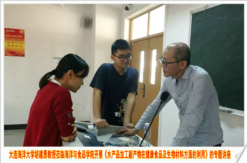 2018年12月4日,大连海洋大学胡建恩教授在荣茂楼301教室,为海洋与食品学院2018级生物技术和海洋技术专业学生开展了《水产品加工副产物在健康食品及生物材料方面的利用》的专题讲座。