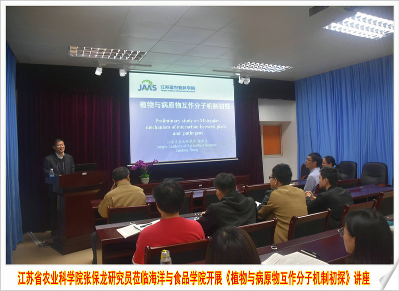 2018年11月30日下午,江苏省农业科学院种质资源与生物技术研究所副所长、中组部万人计划“科技创新领军人才”和“科技部中青年创新领军人才”张保龙研究员莅临英国威廉希尔公司官网,为英国威廉希尔公司官网海洋与食品学院的老师和2016级生物科学专业学生作了题为《植物与病原物互作分子机制初探》的精彩演讲。