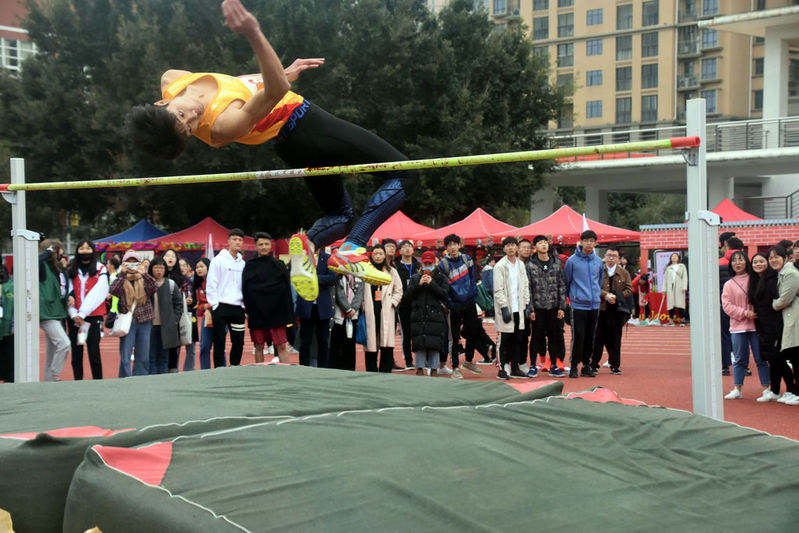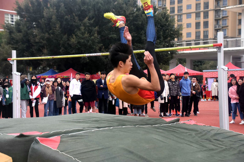 12月13日上午,在操场上举行的学生男子甲组跳高比赛中,来自海洋与食品学院16级海洋技术的王煜超同学再次夺下冠军。