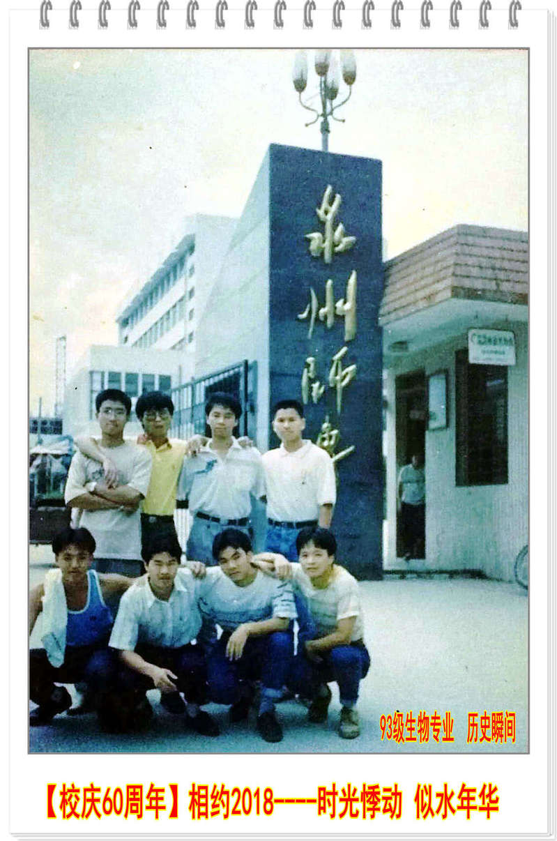 日月如梭星移斗转我们毕业23载, 红尘滚滚岁月沧桑总有那些抹不去的记忆萦绕脑海,难以排解的思念涌上心间,曾经我们怀着对梦的执着,对青春美好的憧憬,在93生物这个大家庭,一起体味着酸、甜、苦、辣,感恩班主任蔡英卿等老师的精心培养。