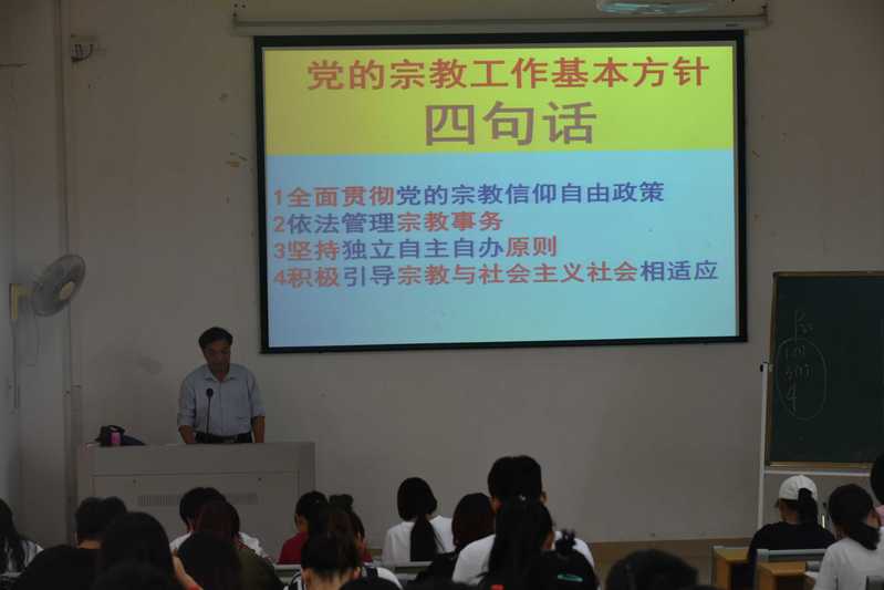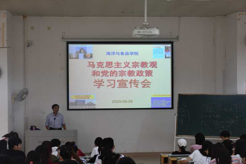 9月25日中午,海洋与食品学院学生团委会、学生会、自律会和各班级学生干部骨干在理工楼320召开马克思主义宗教观和党的宗教政策宣讲会。学院党委书记蔡英卿主持会议。