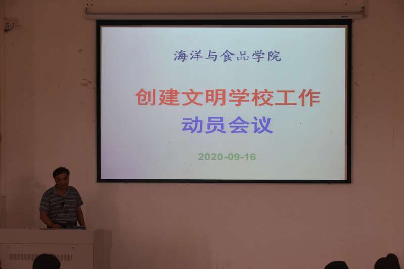 9月16日下午,海洋与食品学院在理工楼320教室召开创建文明校园工作动员会议。会议由海洋与食品学院蔡英卿教授主持,全体学生骨干参加会议。