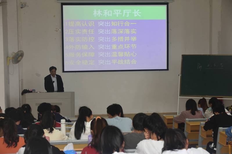 蔡英卿谈到,要持续开展爱国卫生运动,要培养同学们的责任意识和劳动精神,要引导学生养成良好的生活习惯,要严格执行外出申请审批流程,“非必要不外出”,严格落实防控应急处置机制。