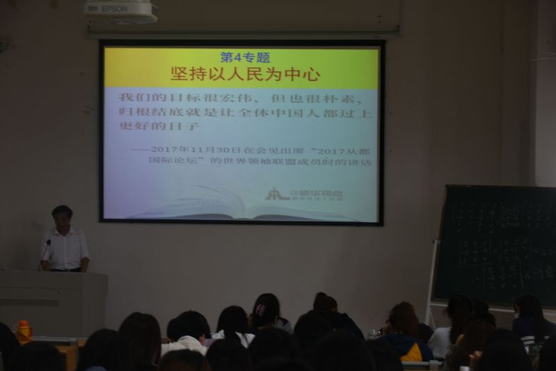 随后,蔡英卿进行第4专题的导学。第4专题的主题为“坚持以人民为中心”,共收录四篇重要著作,分别为《我们的目标就是让全体中国人都过上更好的日子》《人民是我们党执政的最大底气》《始终把人民放在心中最高位置》《我将无我,不负人民》。