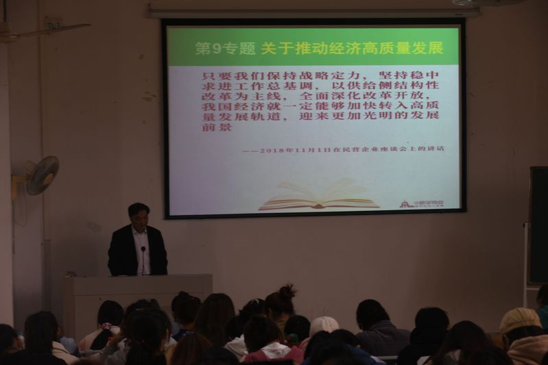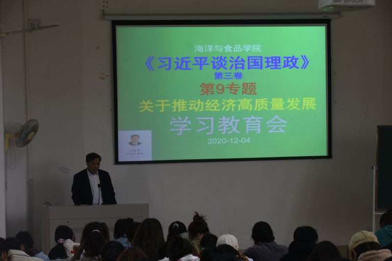 12月4日,海洋与食品学院师生在理工楼320教室学习《习近平谈治国理政》第三卷第9专题。学院党委书记蔡英卿教授主持学习教育会。