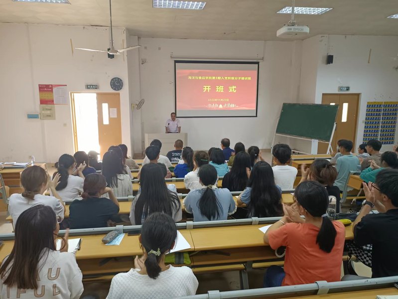 11月20日,海洋与食品学院第9期入党积极分子培训班正式启动,院党委书记蔡志荣主持开班式并致辞,党委副书记刘礼元、组织员安毅参加。