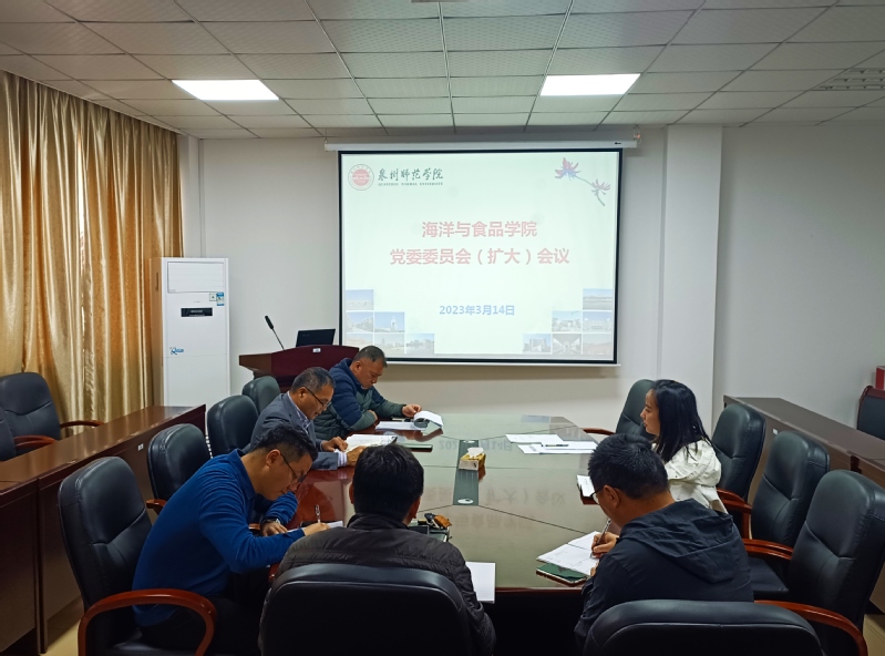 3月14日,海洋与食品学院党委书记蔡志荣主持召开党委委员会(扩大)会议,学院党委委员、各党支部书记、科室(中心)负责人参加。