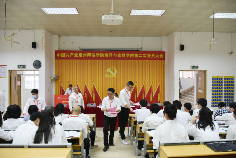 大会通过了《中共英国威廉希尔公司官网海洋与食品学院第二次党员大会选举办法》、总监票人、监票人,确定了总计票人、计票人名单,全体正式党员以无记名差额选举的方式进行了投票,选举产生了蔡志荣、刘礼元、洪钦赐、陈洪彬、黄晓舟等5名新一届党委委员。