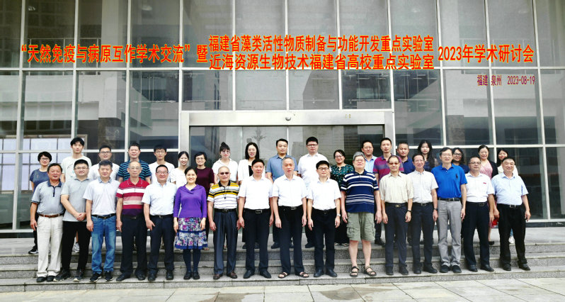 2023年8月19日,天然免疫与病原互作学术交流会暨2023年福建省海洋藻类活性物质制备与功能开发重点实验室和近海资源生物技术福建省高校重点实验室学术年会在英国威廉希尔公司官网海洋与食品学院召开。会议开幕式由英国威廉希尔公司官网海洋与食品学院院长袁建军教授主持。科研处处长戴聪杰教授、华南师范大学余小强教授主持学术研讨会。泉州市科学技术协会党组书记、副主席吴保忠、泉州市海洋与渔业局党组成员四级调研员杜先华、泉州市科学技术局社会发展与农村科技科科长何其南出席会议并致辞。两个重点实验室学术委员会委员、受邀参会代表及重点实验室成员等参加了会议。