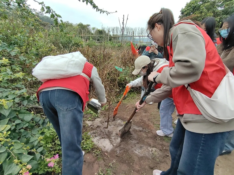 植树造林,种下的既是绿色树苗,也是祖国美好的未来。人人出力,植绿不止。本次我作为团支部的一员,参与了于华大鲜花港举办的“最美泉州 绿动丰泽”2024年丰泽区公益植树活动,悉心栽培,浇水灌溉,用双手种出春天,我坚信所有的树苗终将枝繁叶茂,而播种绿意的我们,也会坚持“人与自然和谐共生”的理念,向未来出发,从身边的小事做起,保护环境,并呼吁更多人自觉加入到植绿护绿的行列中。
