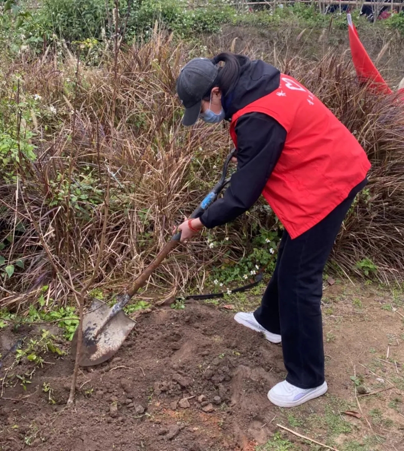 植一抹新绿:植树过程中,团支部成员们利用专业知识,理论结合实际,倡导并践行科学种植的原则,确保树苗能够得到适当的植护。大家不断交流、互相鼓励,三五人一组,手握铁锹,提上水桶,协力挥锹挖坑、扶正树苗、培土浇水、精心挂牌……一番忙碌后,一棵棵桃树苗傲然挺立、错落有致,初绽的枝叶尽显生机,彰显着春天的活力。团支部成员们用实际行动诠释了保护环境的责任担当,也在团队协作中加深了彼此之间的友谊。