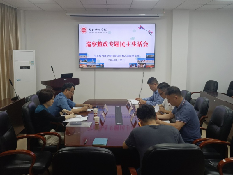 4月30日,海洋与食品学院党委召开巡察整改专题民主生活会,校纪委(监察专员办)纪检监察室副主任刘玉清、巡察办综合科副科长黄雯,学院党委书记蔡志荣、党委副书记兼纪委书记刘礼元、副院长郑宗平参会,会议由蔡志荣主持。