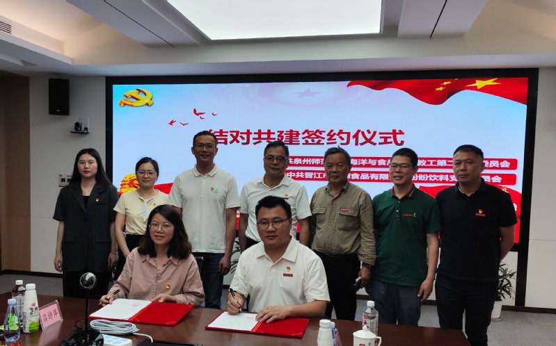为贯彻落实习近平新时代中国特色社会主义思想,推进党建引领业务发展、党建业务融合发展,以校企基层支部共建为抓手,构建“资源共享、优势互补、相互促进、相互提高”的党建工作格局,探索校企合作和协同创新育人模式。5月10日上午,我院党委书记蔡志荣带队到福建盼盼饮料有限公司开展校企党建结对共建合作签约仪式。学院院长袁建军、副书记刘礼元、副院长郑宗平、学院教工第二党支部委员会成员以及福源食品党委副书记林群峰、党委委员吕诗萍、盼盼饮料支部委员成员等参加活动。
