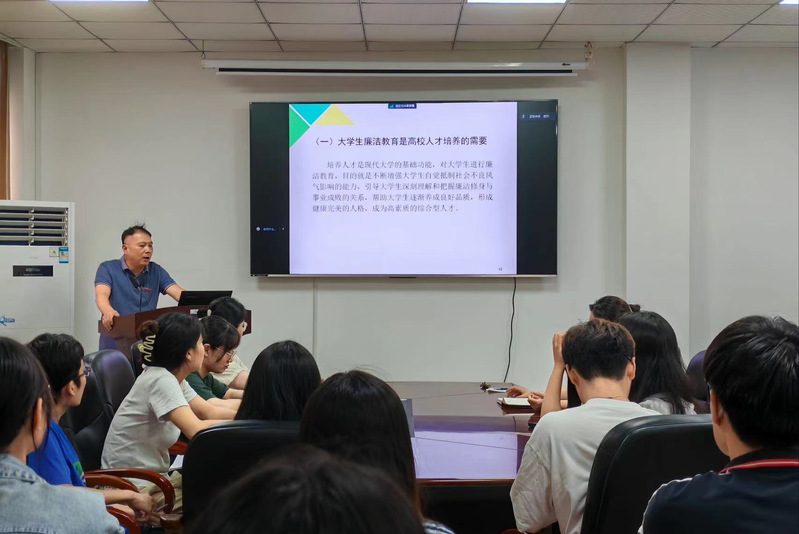 课上,刘礼元带领全体党员共同学习了《中国共产党纪律处分条例》修订的历史沿革和主要内容,并且通过一起学《条例》微视频和观看警示教育片等方式,深入浅出地讲解了廉洁从业的内涵、要求和意义,引导毕业生们树立正确的职业观、价值观和道德观。同时,刘礼元也希望全体党员在成长拨穗期自觉扣好廉洁自律的‘第一扣’,在成长黄金期主动系好廉洁自律的‘安全带’,始终坚守职业道德底线,不断提升自身综合素质,为推进中国式现代化贡献青春力量。