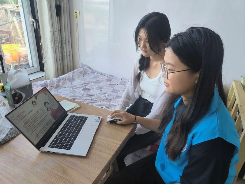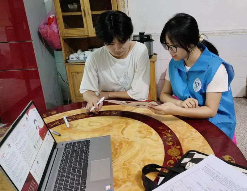 暑假期间,志愿队还召集内蒙古、泉州等多地队员,深入到所在地方的贫困家庭中,进行面对面的交流宣传,进一步扩大资助志愿服务的“地域”影响力。队员们认真倾听学生家庭的困难与需求,用通俗易懂的语言为学生和家长解读国家资助政策体系以及助学贷款办理方法,并派发资助宣传资料,打消他们“上不起学”的顾虑。不仅如此,队员们还讲述自己地励志故事,鼓励他们树立信心,积极面对学习和生活。
