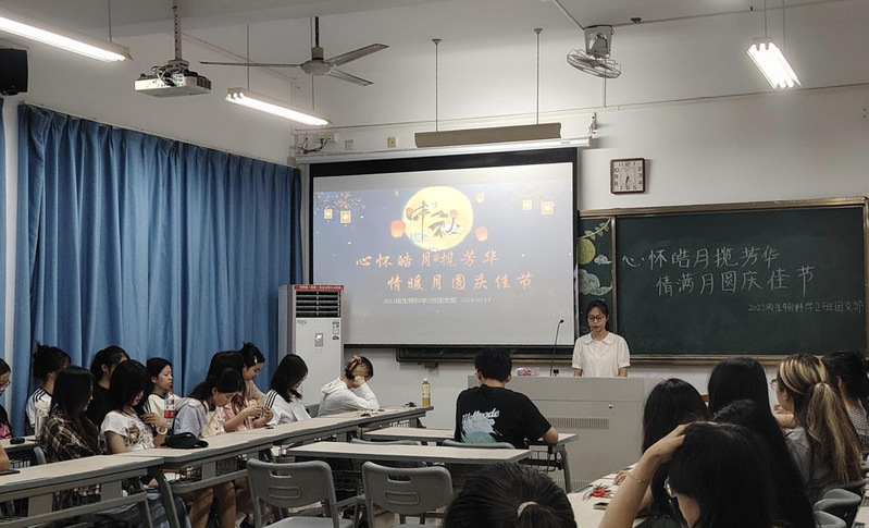 活动中,各团支部通过生动讲解与互动体验相结合的方式,带领同学们深入探索中秋佳节的起源、传统美食、风俗习惯等,让青年学子在知识的海洋中遨游,深刻感悟这一传统节日背后所蕴含的丰富文化底蕴和深厚情感价值。为了更加生动地展现中华优秀传统文化的魅力,各团支部还精心设计了猜灯谜、飞花传令、成语接龙等一系列趣味横生的游戏环节。同学们积极参与,在欢声笑语中体验传统文化的独特韵味,不仅增进了对传统文化的了解与热爱,更在互动中增进了彼此之间的友谊与默契。