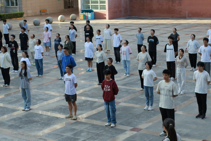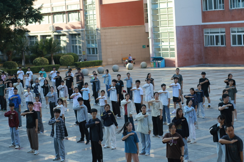 暖心陪伴。清晨的中山广场上,学长学姐们如同璀璨的星辰,照亮着排操队员们的前行之路。他们耐心指导,细心纠正,将宝贵的经验与智慧无私地传授给学弟学妹们。在学长学姐的引领下,队员们的动作愈发规范,团队默契度也悄然提升。