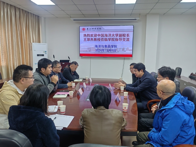 2024年12月9日,中国海洋大学党委常委、副校长王厚杰教授莅临学院考察指导。学院党委书记蔡志荣、副院长梁鹏教授及部分教师代表参加了座谈会,双方围绕学科建设、科研合作及人才培养等议题展开深入交流。