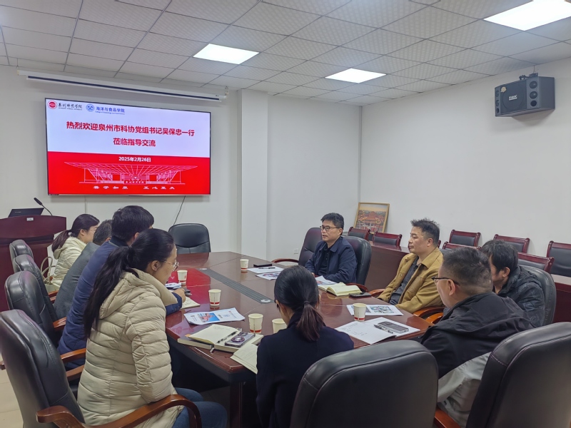 2月26日下午,泉州市科协党组书记吴保忠、学会部主任陈惠龙到海洋与食品学院开展产学研合作专题调研。学院党委书记蔡志荣、副院长梁鹏教授及相关专业负责人参加了座谈。