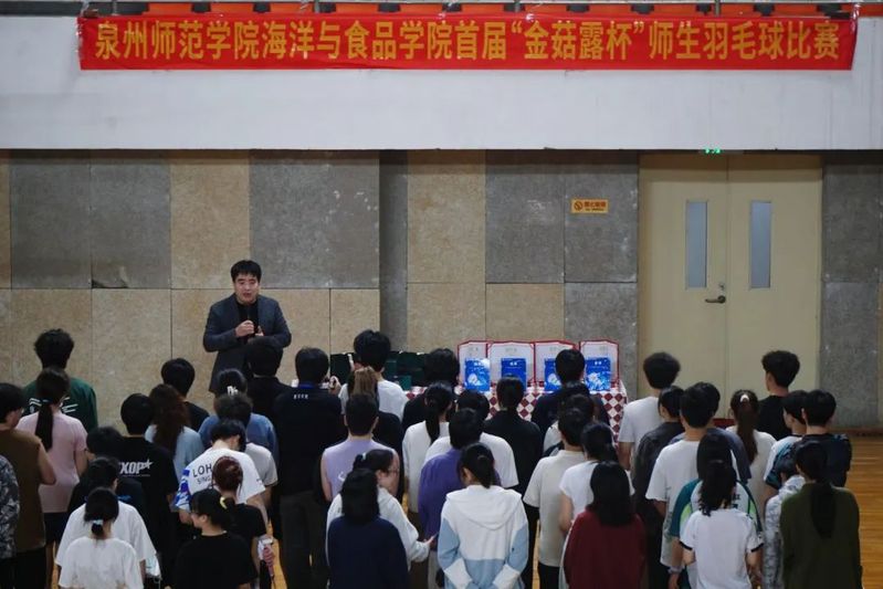 4月12日上午,我院首届“金菇露”杯羽毛球比赛在明德体育馆盛大开幕,泉州金菇露生物科技有限公司总工程师吴耿煜,学院党委书记蔡志荣,党委副书记、副院长梁鹏,党委副书记刘礼元,团委副书记、学工办副主任王哲芳以及全体辅导员出席开幕式。我院师生运动员共100余人参加比赛,比赛共分为男双、女双和混双三个项目。