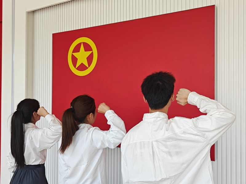 活动现场,鲜艳的团旗迎风舒展,熠熠生辉的团徽光芒闪耀,点燃了同学们的参与热情。同学们巧妙结合专业特色,创意十足地与团旗和团徽合影留念。在实验室里,身着洁白大褂的学子们手持精密科研仪器,与团旗和团徽定格同框,每一个专注的眼神、每一个严谨的操作,都彰显着追求真理的执着与坚守;在学校标志性的刺桐花前,同学们簇拥着团旗,脸上洋溢着灿烂的笑容,青春的蓬勃朝气扑面而来。这些别具一格的合影,不仅是青春风采的生动展现,更是信仰力量的具象表达。