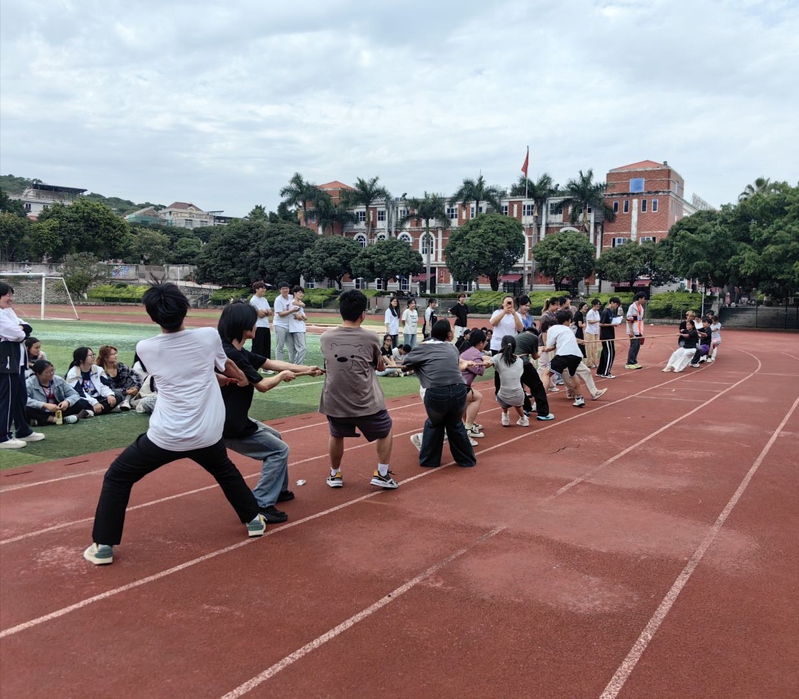 本次运动会创新采用积分制赛制,设置“接力井字棋”“聚力拔河”“超大气排球”三大特色项目,将心理健康教育融入运动实践,充分展现我院学子蓬勃向上的精神风貌。接力井字棋作为速度与智慧的融合项目,参赛队员在疾速奔跑中完成棋盘布阵。选手们以缜密的思维预判局势,通过默契沟通调整战术,展现了冷静决策与团队协作的高度统一。拔河是力量与气势的比拼。各队队员扎稳马步、紧握绳索,在力量角逐中诠释集体凝聚力。红绸标志的每一次偏移,都凝聚着战术部署与齐心协力的团队精神。超大气排考验肢体协调与团队配合的融合。赛场上,球员肢体协调运作,脚步移动、跳跃扣杀等动作行云流水。团队成员紧密配合,传球、掩护、进攻一气呵成,将个人能力与团队战术完美融合。