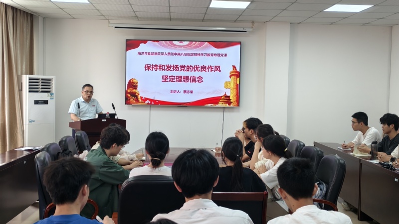 5月16日,学院党委书记蔡志荣为学院第13期入党积极分子暨2025年春季学期“青马工程”培训班学员讲授深入贯彻中央八项规定精神学习教育专题党课,题为《保持和发扬党的优良作风,坚定理想信念》。