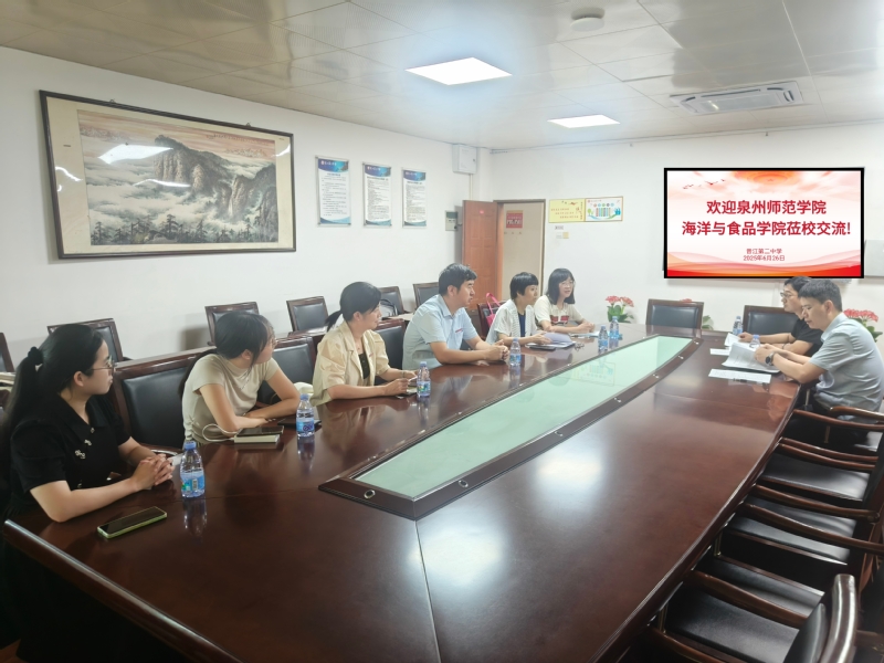 梁鹏首先对晋江第二中学的热情接待和长期支持表示衷心感谢,对该校卓越的办学成果与育人理念表示赞赏。并详细介绍了学院的学科优势、专业特色及人才培养目标。着重强调了实践教学在师范生培养中的核心地位,期待双方持续深化合作,为师范生打造更高水平的教育实习平台,助力学生在真实教学环境中锤炼技能、提升素养,无缝对接未来教育岗位需求。陈细香从教学研究与课程体系优化等角度,深入阐述了双方合作的广阔空间与深远意义;王艺璇也表示学院将积极调动资源,在教师专业发展、学科建设等领域为晋江第二中学提供有力支持。双方还围绕基础教育发展新趋势与一线岗位实际需求,就学院生物科学专业人才培养方案的修订进行了深入研讨。
