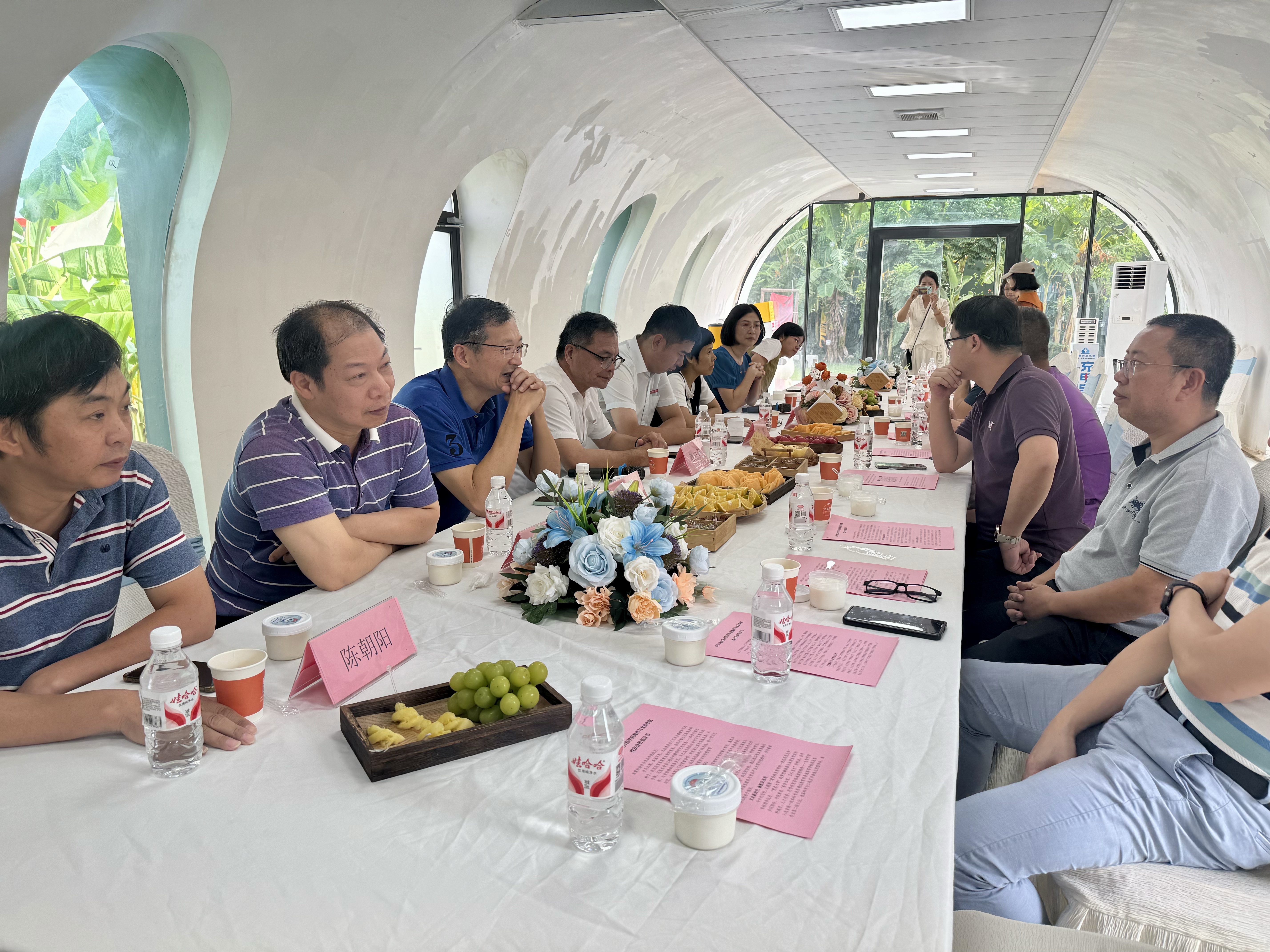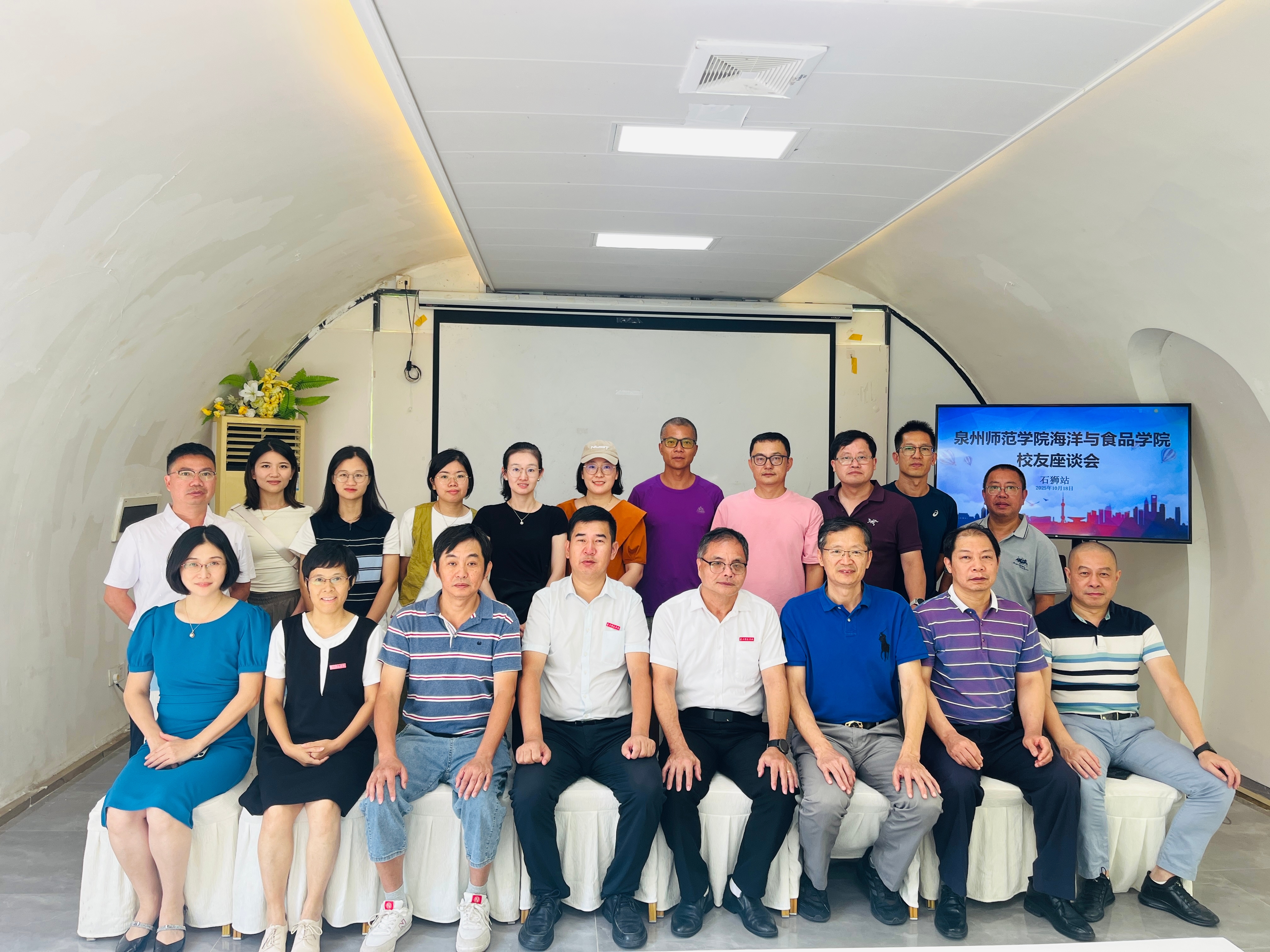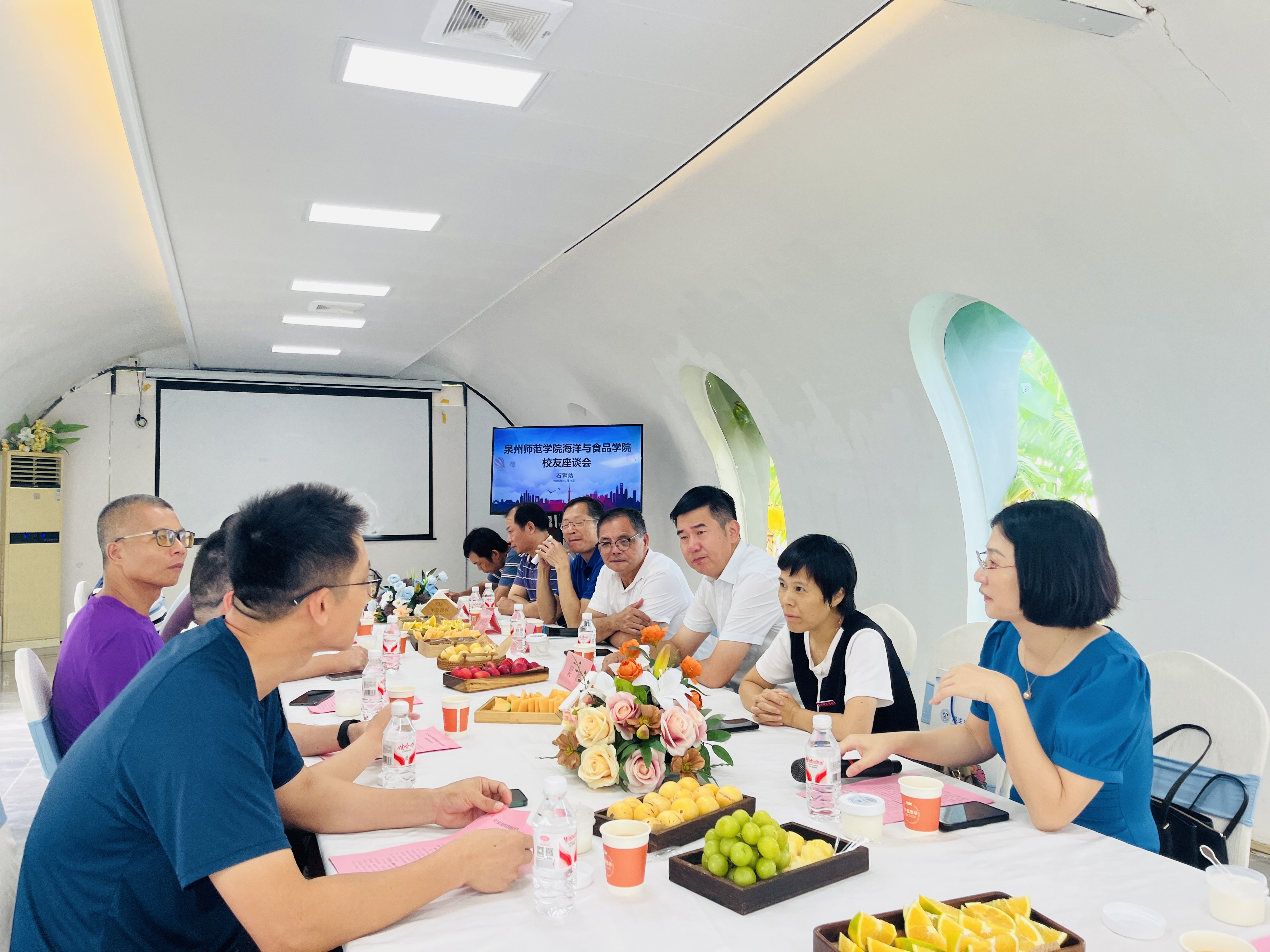 为紧密联结校友情谊,汇聚校友智慧与力量,扎实推进学院校友会筹建工作,10月18日,海洋与食品学院石狮市校友座谈会在千玺悠谷·时光隧道研学工作室隆重举行。本次座谈会以“携手·感恩·共赢”为主题,旨在汇聚校友智慧,推进校友工作,共商学院发展大计。学院党委书记蔡志荣、副院长(主持工作)梁鹏、五级职员戴聪杰教授、生物科学系主任陈细香、吴文杰、陈朝阳等一行6人与来自石狮教师进修学校林艾芳(1992级)等各中学的十余位各届优秀校友欢聚一堂,畅叙师生情谊,共话未来发展。座谈会由林艾芳主持。