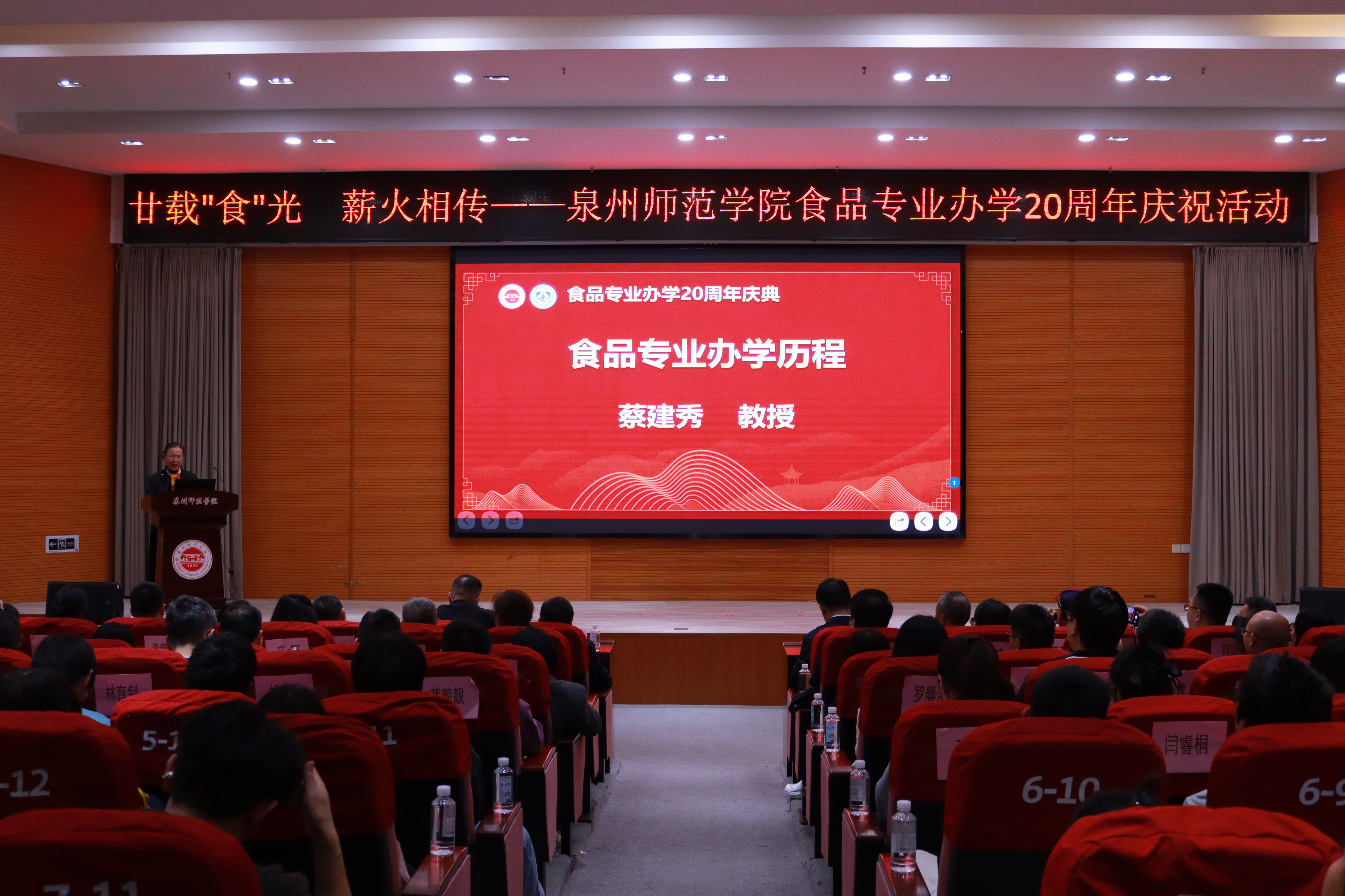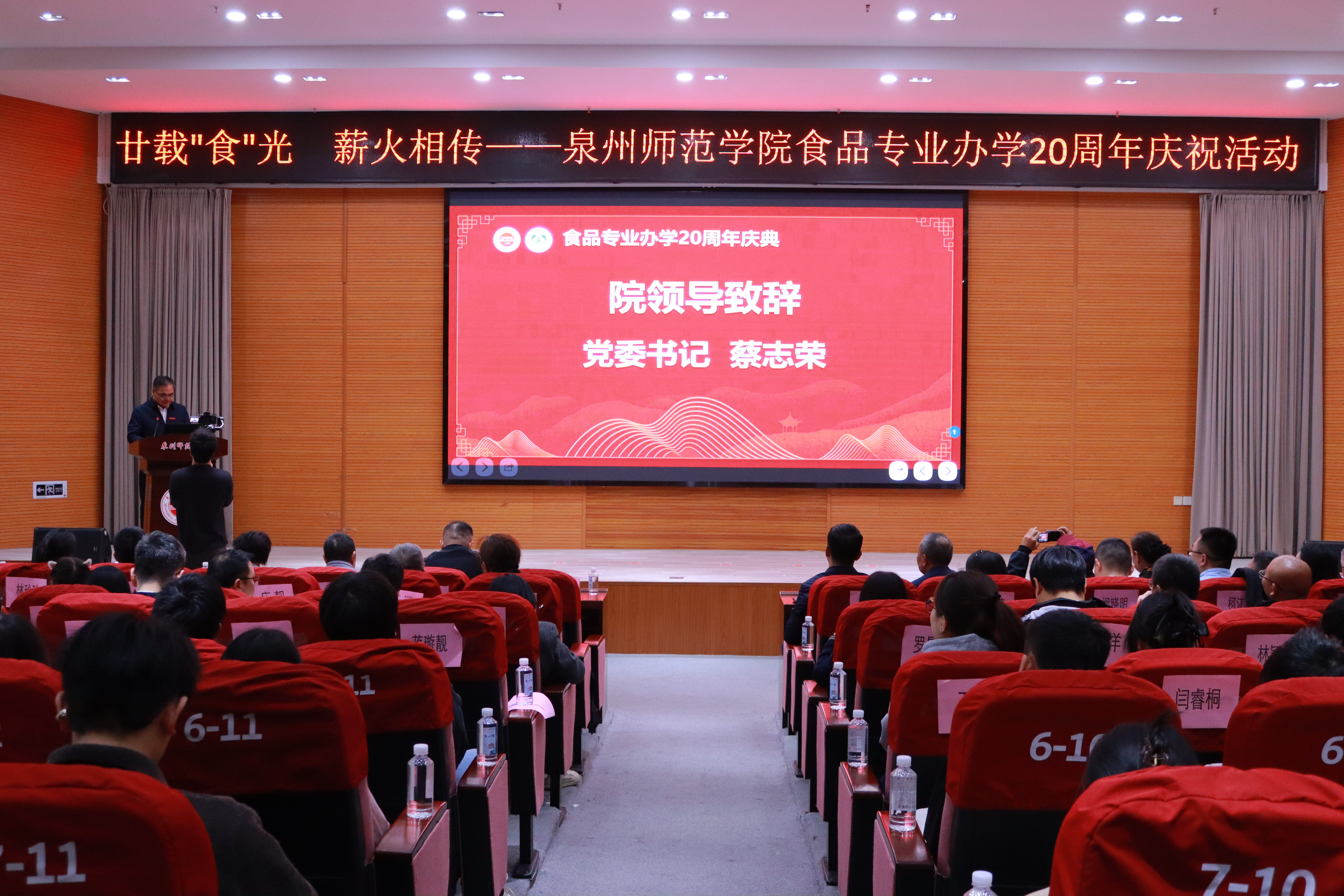 11月22日下午,英国威廉希尔公司官网海洋与食品学院食品专业办学20周年庆活动在学校特教大楼第二学术报告厅隆重举行。闽南科技学院、黎明大学、泉州市食品行业协会、泉州市营养健康协会、亲亲食品、安记食品、闽南水产等在泉食品类高校及行业协会龙头企业代表,学院历任领导、退休教师、各届校友及师生代表共180余人齐聚一堂,共庆专业二十载华诞,共话行业发展新蓝图。活动由学院食品科学与工程系负责人陈洪彬主持。