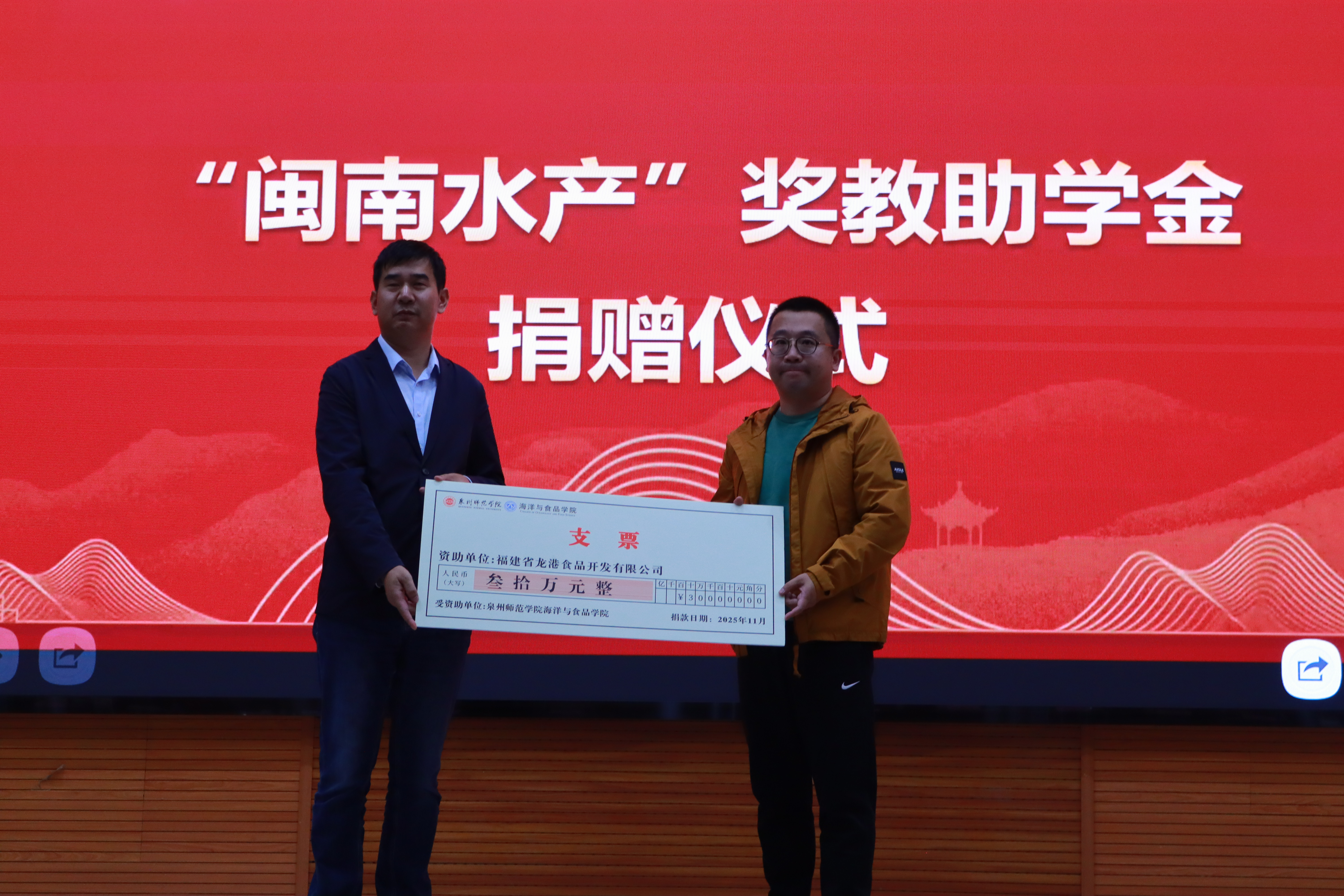 活动现场还举行了“闽南水产”奖助教学金捐赠仪式,闽南水产公司心系教育,慷慨解囊,捐资助学,企业董事、副总经理施金堆为首届获奖师生一一颁奖,彰显了企业心系民生、情牵教育的博大情怀与高度的社会责任感。此外,还举行了行业导师聘任仪式,聘任安记食品、亲亲食品、品鉴食品、行业协会高管担任行业导师,帮助学生了解行业最新动态、岗位能力模型,使人才培养更具针对性和实用性。