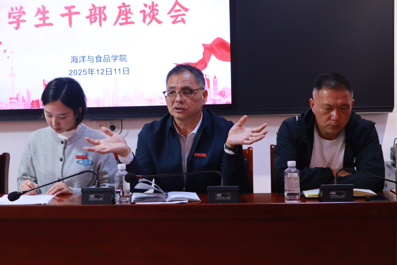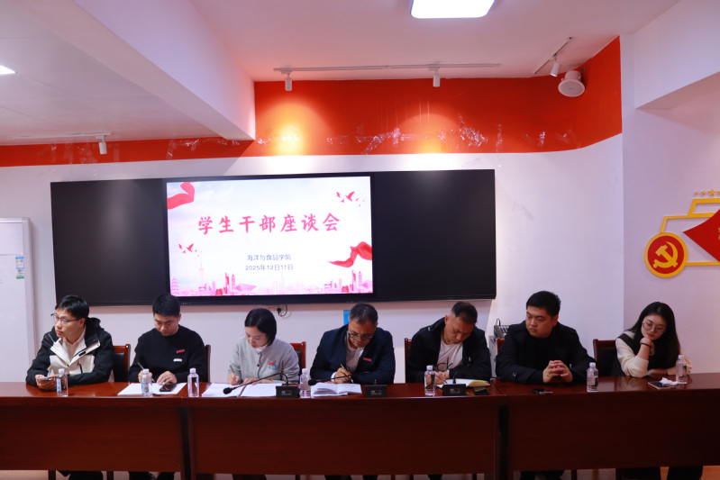 为进一步加强学生干部队伍建设,畅通师生沟通渠道,精准对接学生需求,助力学院事业高质量发展,12月11日,海洋与食品学院在C13社区活动中心召开学生干部座谈会。学院党委书记蔡志荣、副书记刘礼元,学工办主任、团委书记王哲芳及全体辅导员出席会议,学院三委会主席团成员、各班级班长参加,会议由王哲芳主持。