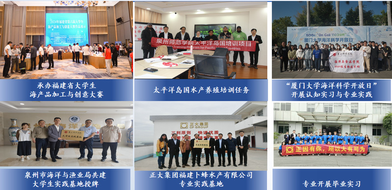实践基地:海洋技术专业办学以来一直秉承服务泉州地方产业经济,并辐射全省,为海洋经济产业发展培养高素质的应用型人才,注重学生创新创业实践能力的培养。目前本专业已与10余家福建省海洋相关企业和事业单位共建专业实践基地,如自然资源部第三海洋研究所、泉州海洋环境监测预报中心、正大集团福建卜蜂水产有限公司、恒兴饲料有限公司等。