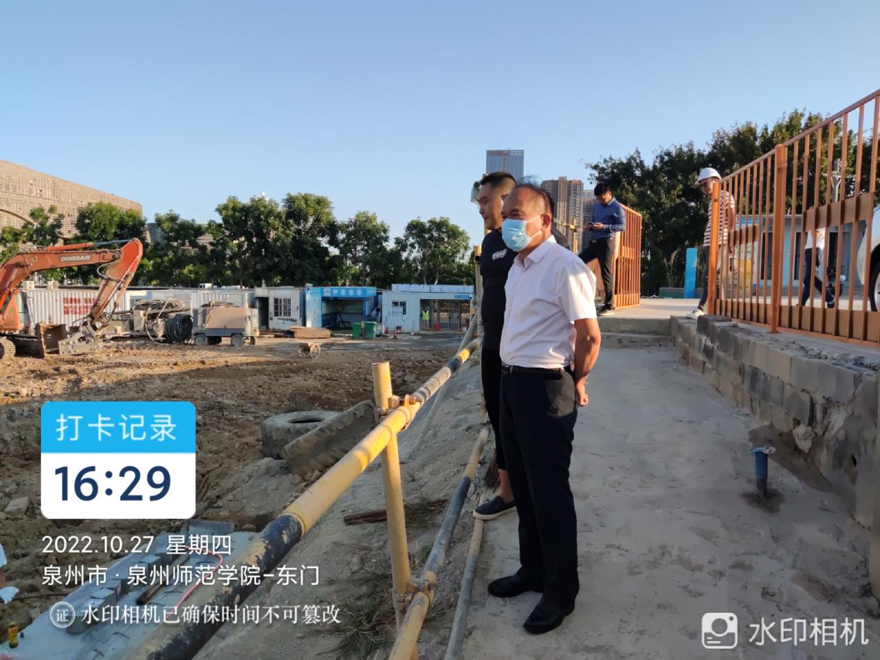 2022年10月27日,副校长陈亚兵带队前往工科大楼项目开展工程进度专项检查,基建处黄国川副处长等人员陪同检查。
