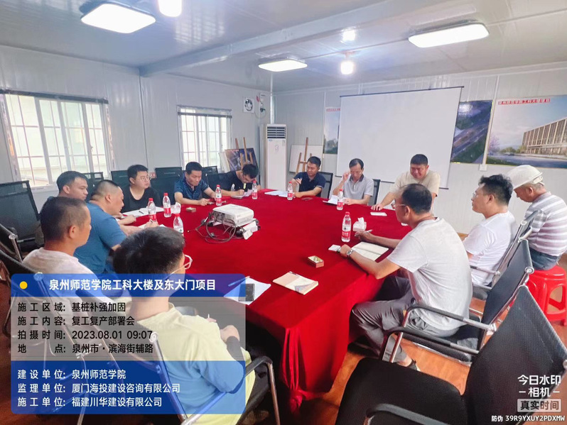 台风过后,基建处迅速组织在建项目召开灾后整修暨复工复产保障会议。针对工地工棚、安全围挡、临时用电、深基坑、高边坡、脚手架、高处作业、起重机械等安全重点区域进行严格审查、安全评估,并对施工人员进行安全交底、场地清洗消杀后,迅速恢复正常的施工秩序。
