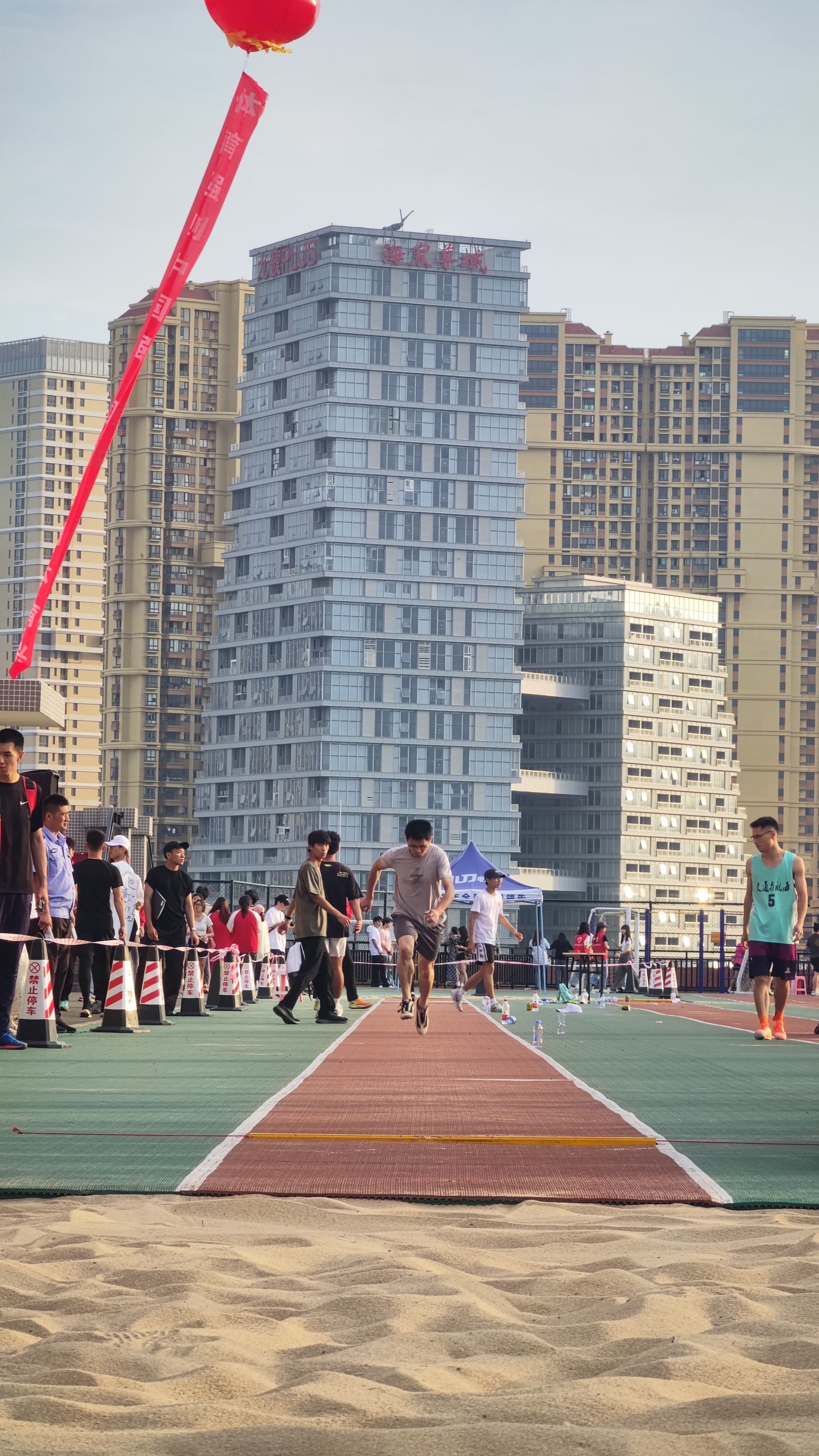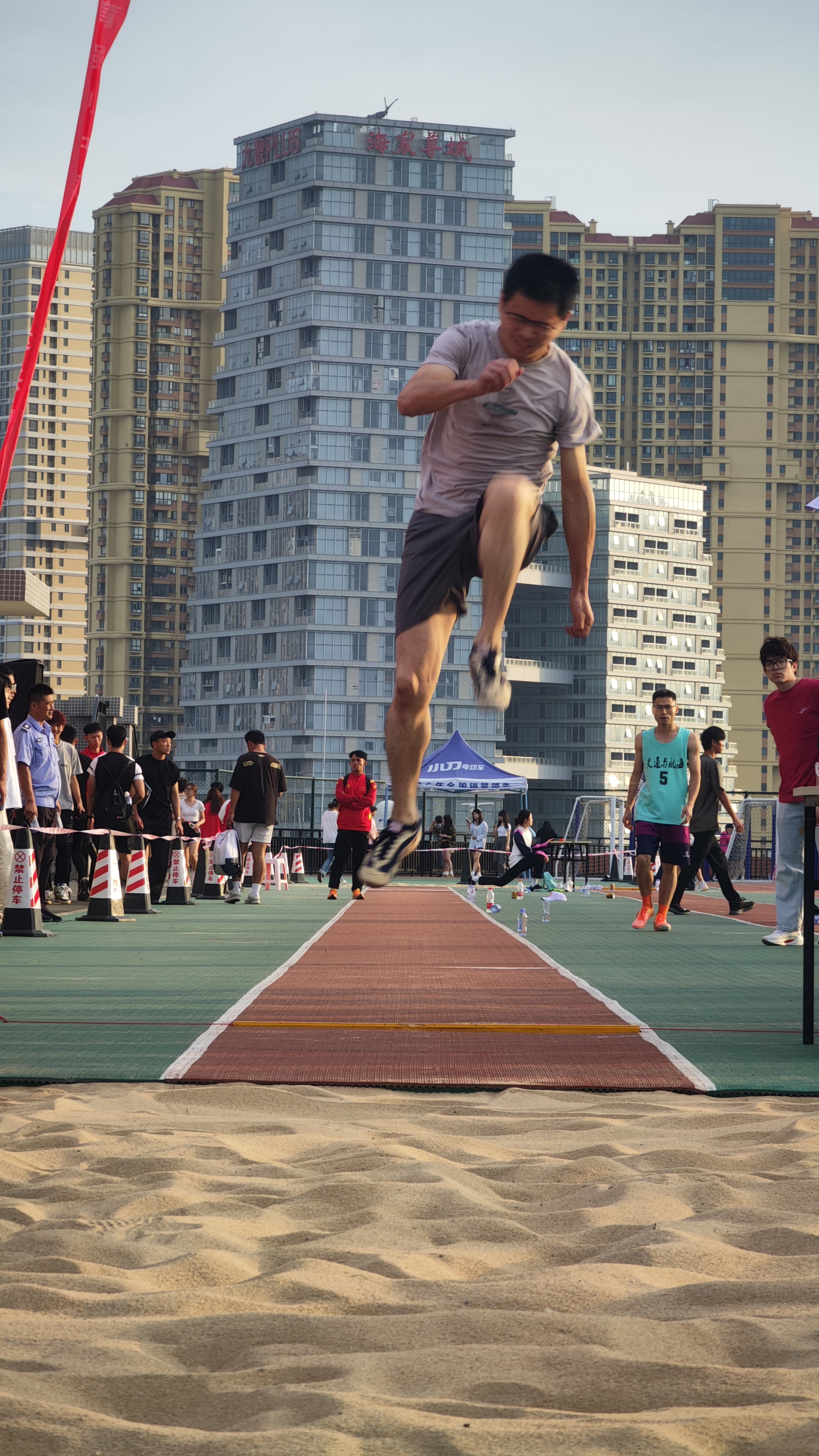 (图为郑鹏海同志参加跳远比赛)