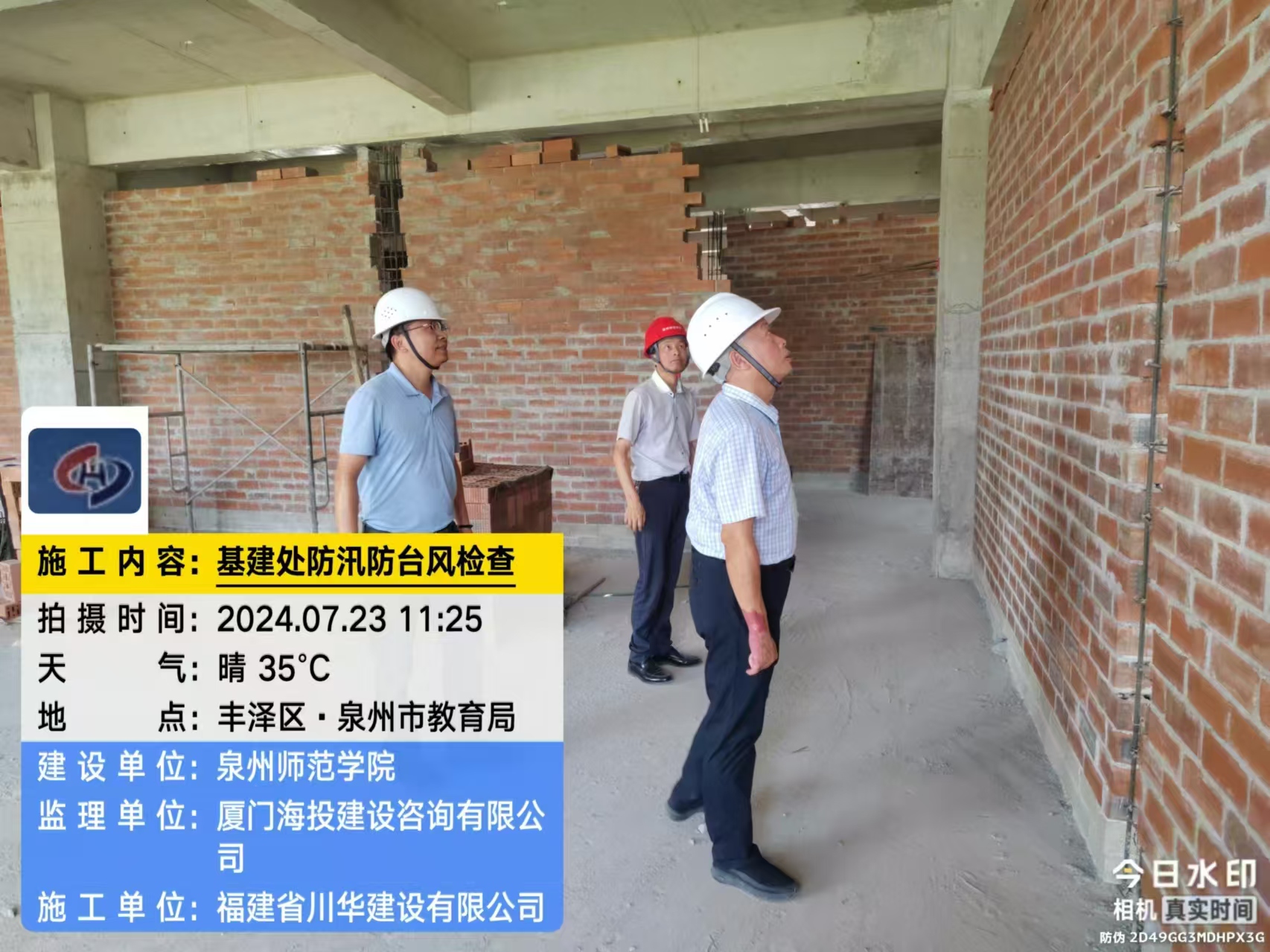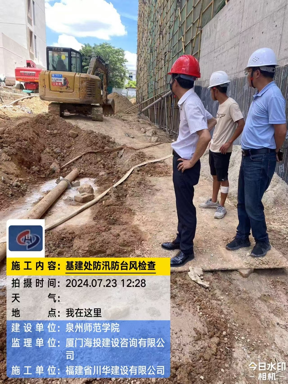 为做好防汛防台准备及应急工作,7月23日基建处开展在建工地防汛防台专项检查工作,基建处处长谢继存、副处长黄国川、在建项目建设、监理、施工单位相关负责人参与检查。
