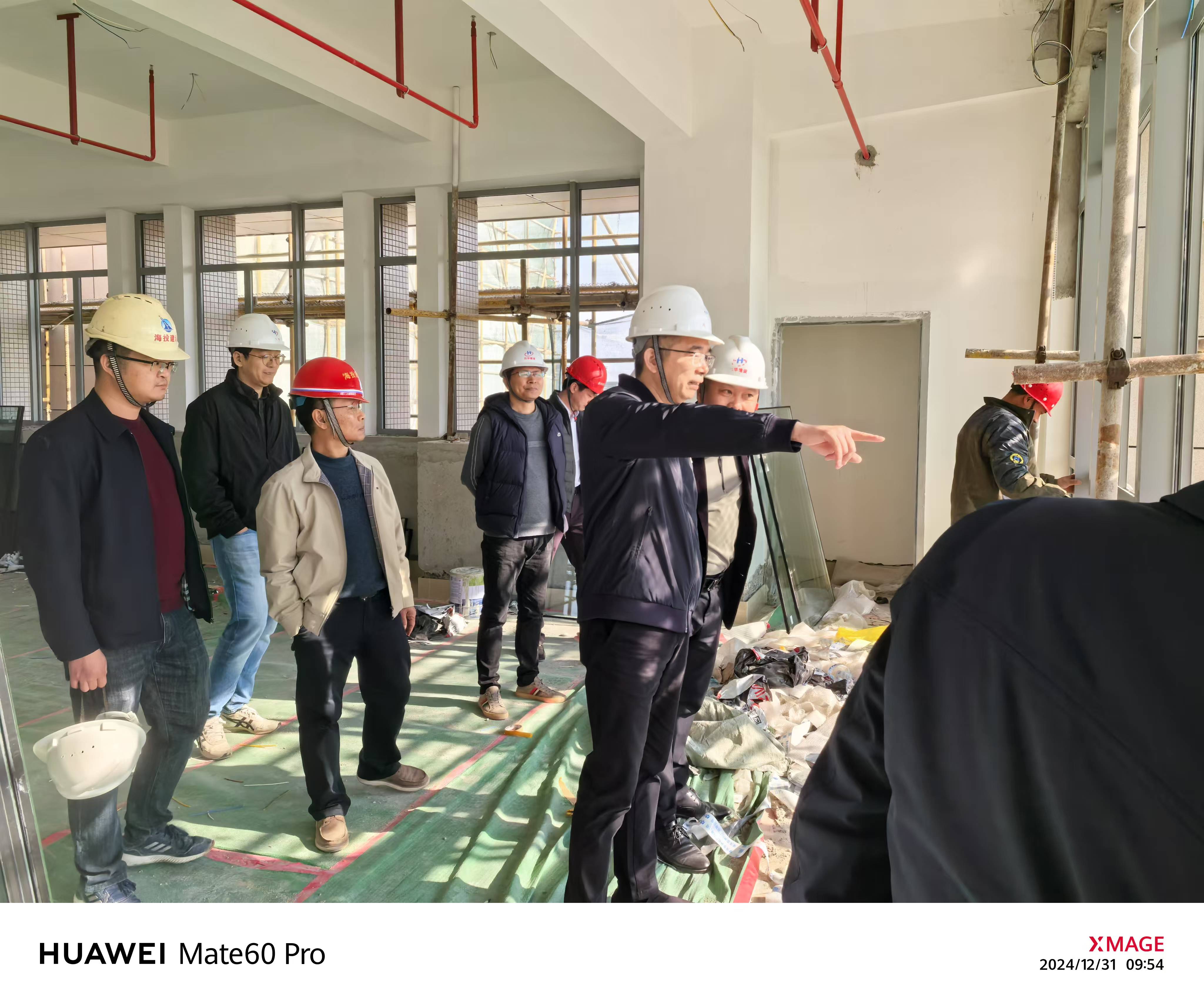 2024年12月31日,副校长黄江昆深入学校工科大楼施工现场,全面了解工程进展情况,对岁末年初的施工进度推进、安全生产保障、农民工工资支付等关键工作予以指导和部署。基建处、后勤管理处、施工单位及监理单位相关负责人陪同检查。