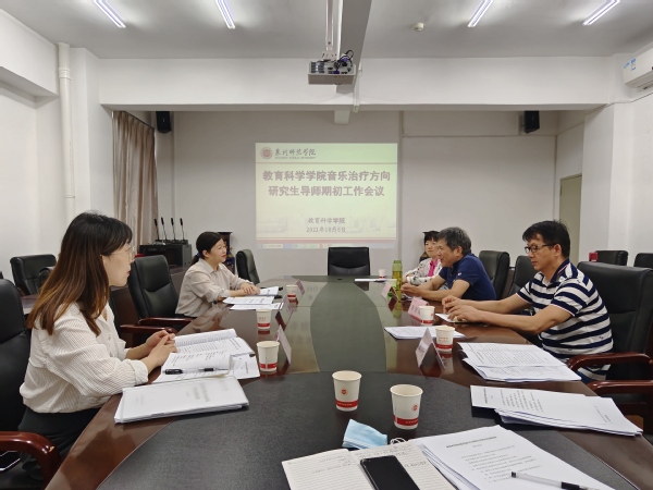 10月6日,教育科学学院召开音乐治疗方向研究生导师期初工作会议,校研究生处处长陈敏红、副处长孙丽丹等,教育科学学院党委书记陈一祥、副院长邵华、全体硕士生导师、艺术教育中心教师等参加会议。