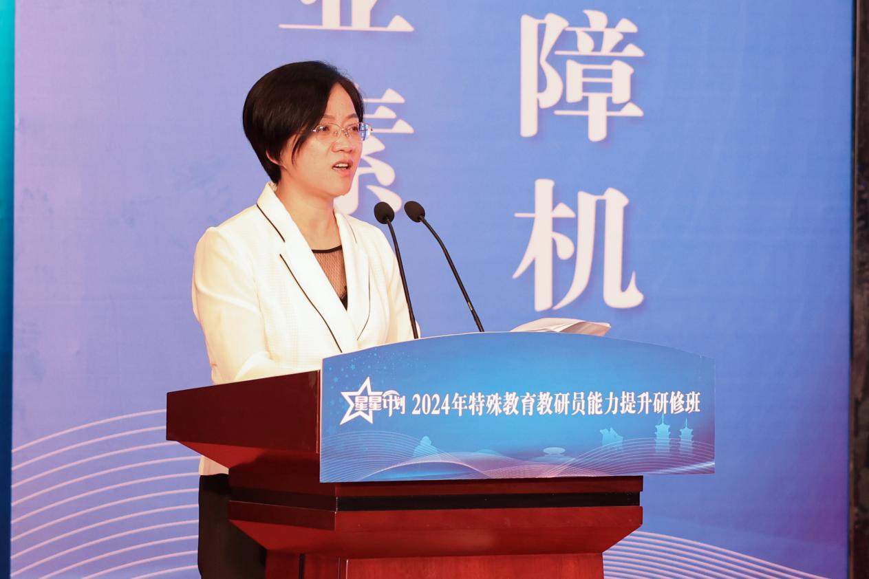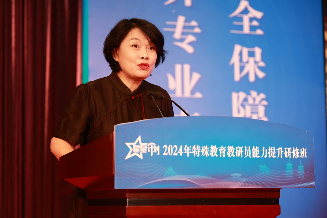 中国教师发展基金会副秘书长张东燕表示,特殊教育是建设中国特色高质量教育体系不可或缺的重要内容。“星星计划”特殊教育公益项目通过开展特殊教育教师专业培训、设立特殊教育奖教金项目、组织开展实用性课题研究,聚焦特殊教育骨干教师、教研员和校长三类关键人群的专业发展,助力建设高质量特殊教育体系。张东燕指出,教研是提高师资质量的重要保障,本次教研员能力提升研修班主要面向省级、地市级特殊教育教研员,帮助教研员提升服务教育决策、引领课程教学改革、指导教师专业成长、促进学生全面发展的综合能力。她希望参培教研员加强学习交流和借鉴,做到学有所得,学有所思,学以致用,积极承担起引领一线特殊教育教师发展的责任与使命,将本次培训所学的教学理念、实践经验和研究成果运用到实际工作中,为新时代构建高素质、专业化的特殊教育教师队伍添砖加瓦。