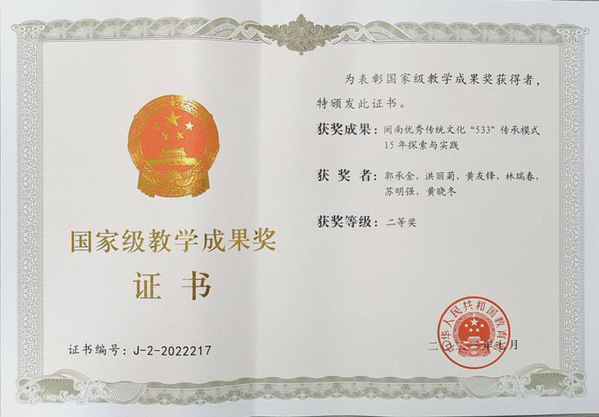 ●获福建省教学成果特等奖2项、一等奖3项