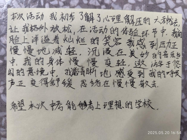同学们通过现场的书写,反馈了对活动的感受和对中考的希望。