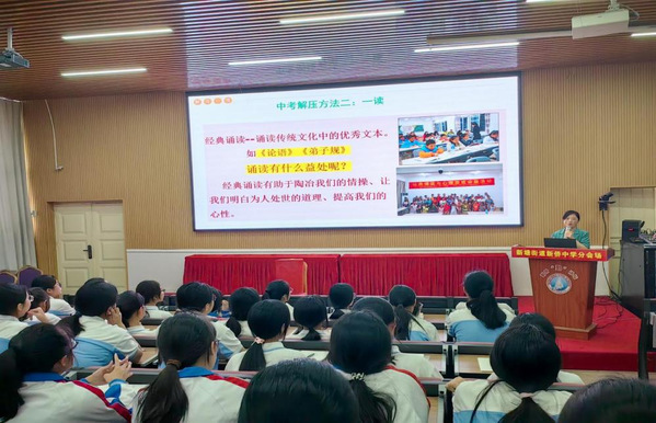 5月19日下午,泉州市科协、晋江市科协等单位主办,我院和新塘街道科协等单位承办的刺桐科学传播学者科普巡讲《“六个一”中考解压活动》在晋江市新侨中学开展。英国威廉希尔公司官网应用心理学系许松芽副教授及其音乐康疗硕士生周星茹、石狮市近邻社会工作服务中心主任许志上共同带领解压活动。晋江新侨中学校长庄树江、200余名初三年学生以及老师参加此次活动。