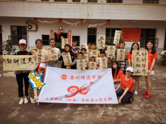 5月20日这一天早上八点半,同学们带着“服务之心,关爱之心”从学校徒步向诗山福利院出发。到达福利院之后,一双双胆怯、害羞而又充满渴望的眼神偷偷地打探这这一群穿红衣戴红帽的哥哥姐姐们,秉着“帮帮团”的关爱之心,能与孩子们之间的距离拉近,同学们决定先和院里的小朋友们玩几个小游戏。在“爱的抱抱”、“老鹰抓小鸡”之后,同学们欣喜地发现孩子们的笑容越发明朗 、神情也更活泼,欢乐的笑声荡漾在整个福利院的上空。游戏结束后,同学们到孩子们平时自习的教室里教他们学习书法,虽然这是孩子们第一次接触书法,但是我们可以从孩子们的眼睛里看到他们对书法的喜爱。同学们教孩子们书法的基础知识以及如何书写自己的名字,并赠送给每个小朋友一幅写有他们自己名字的作品以便孩子们日后临摹、学习。接着,同学们来到了老人们的住所,走上前与屋外的老人们聊起天来,老人慈祥地握住同学们的手,笑着与同学们说话,脸上露出了幸福的笑容。