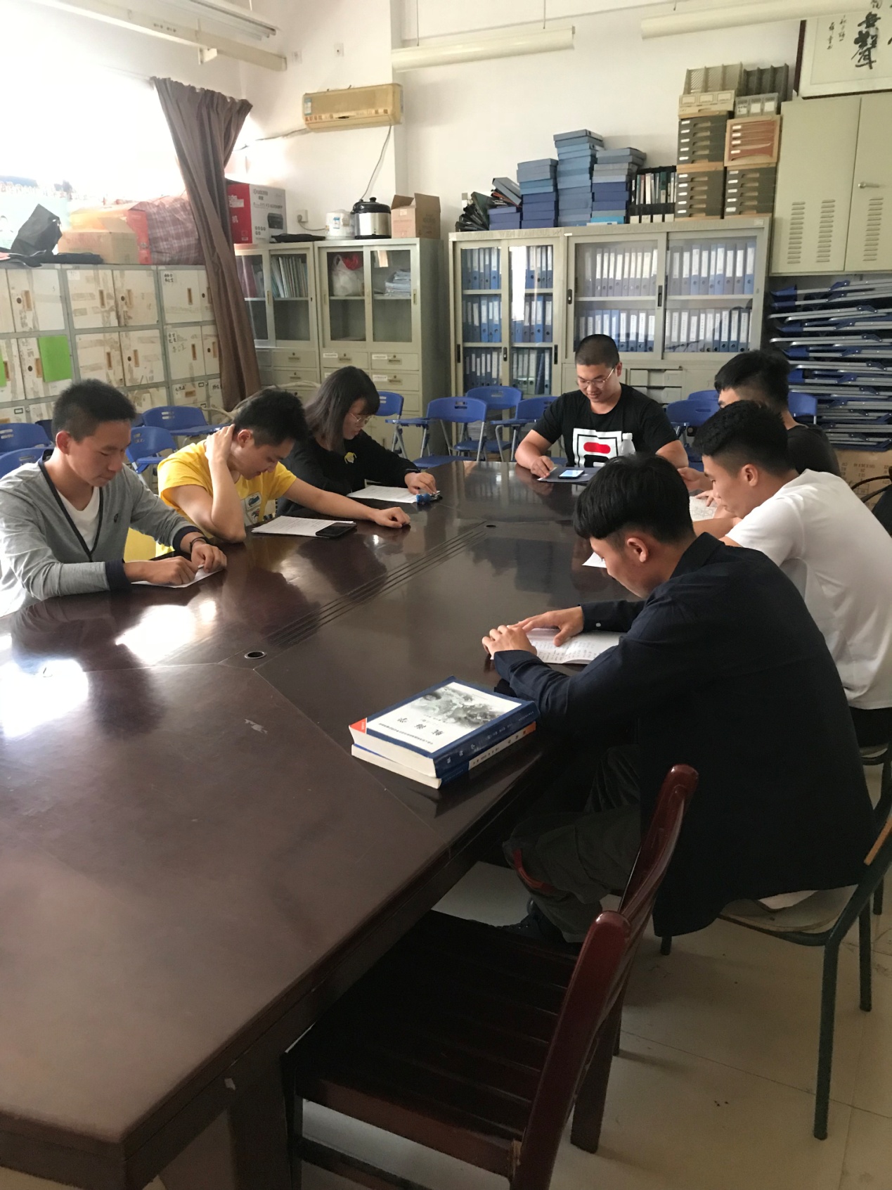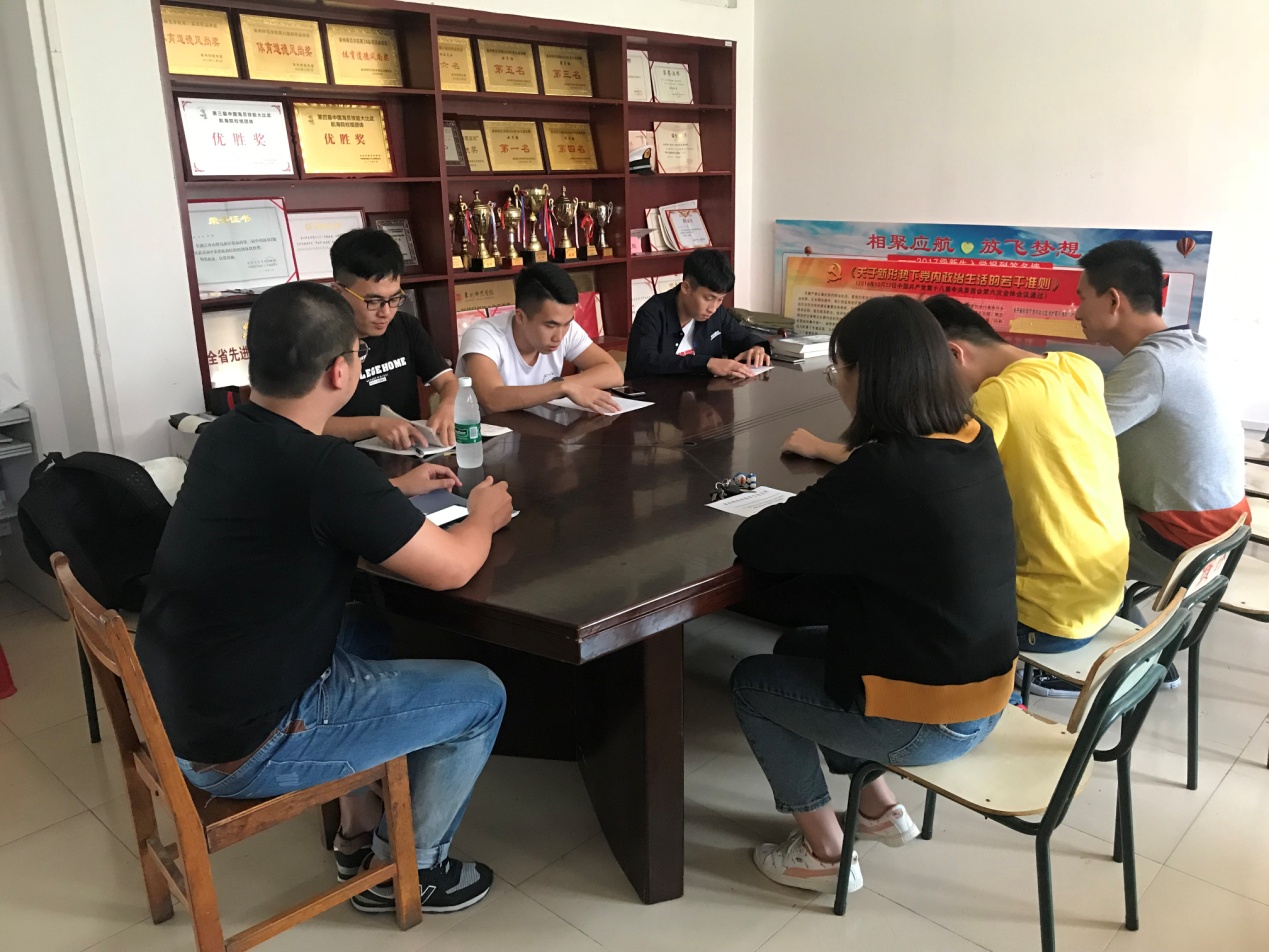 2018年10月25日下午3时应用科技(航海)学院学生第六党支部在理工213召开了关于“两学一做”学习教育中开展“新思想、新担当、新作为”的专题学习。应用科技(航海)学院学生第六党支部到场党员(含预备党员)共9人,钟晓勇主持召开。
