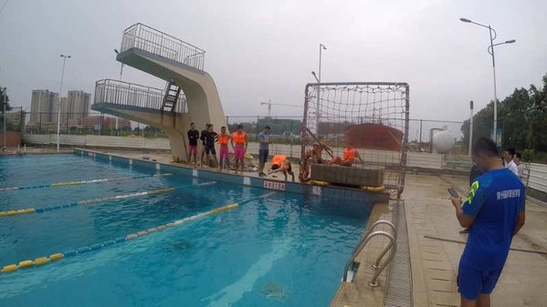 撇缆操作是船舶在靠码头带缆绳时一项必备技能,是航海专业学生获取值班水手证书的一项必考科目,同时也是中国海员技能大比武中的项目之一。这次比赛双方队员不畏大雨在田径场模拟比赛的流程,双方依次交替,每位队员抛掷三撇来记录成绩。随后我们前往了水上训练中心进行了关于铁人三项的交流。