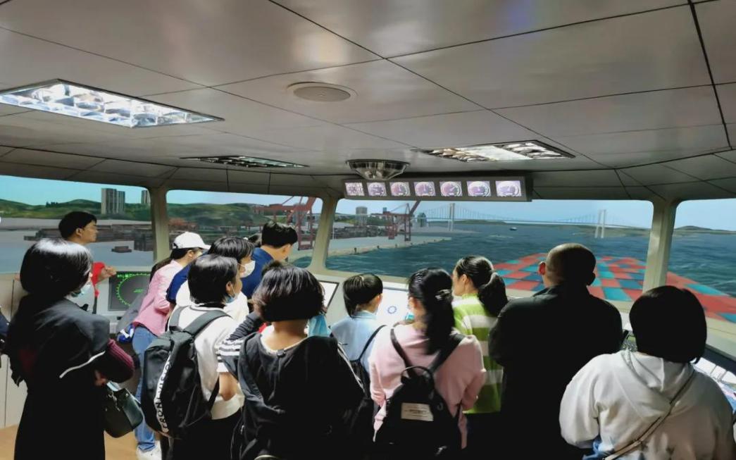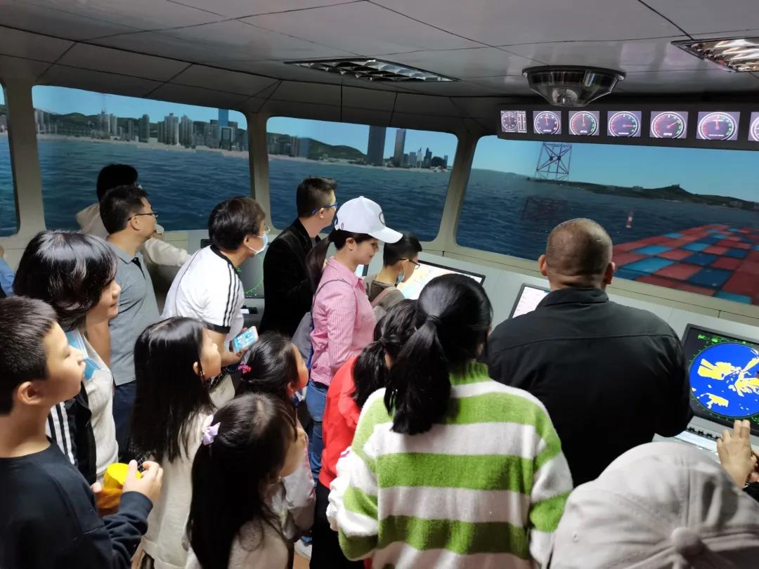 随后,家长及小朋友们到航海模拟器实训室进行参观。讲解员黄老师解说各种仪器是如何操作,如何控制,还有如何应对各种天气下海上的状况,以保证船只之间不会发生碰撞以及出现海难时如何机智的逃生,船只下沉时如何逃离下沉所产生的巨大漩涡等。讲解完成之后还进行了实际操控,小朋友们在指导下真实体验驾驶巨轮航行,充分感受航海航行乐趣。