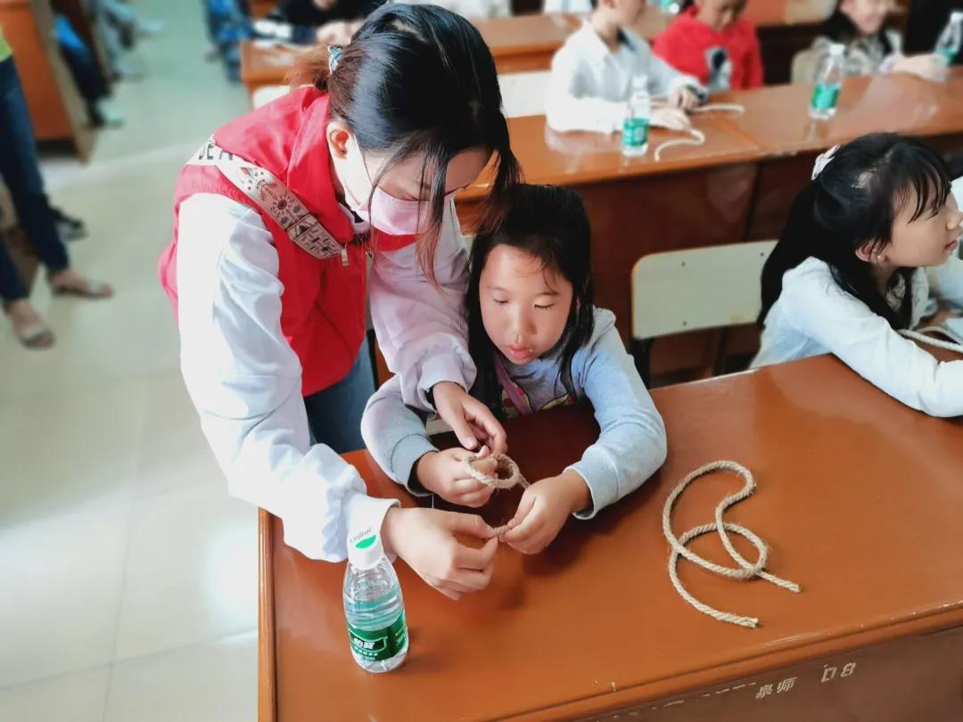 活动的最后,还安排了家长及小朋友们进行水手结的学习,动手锻炼感受航海专业的小技巧。
