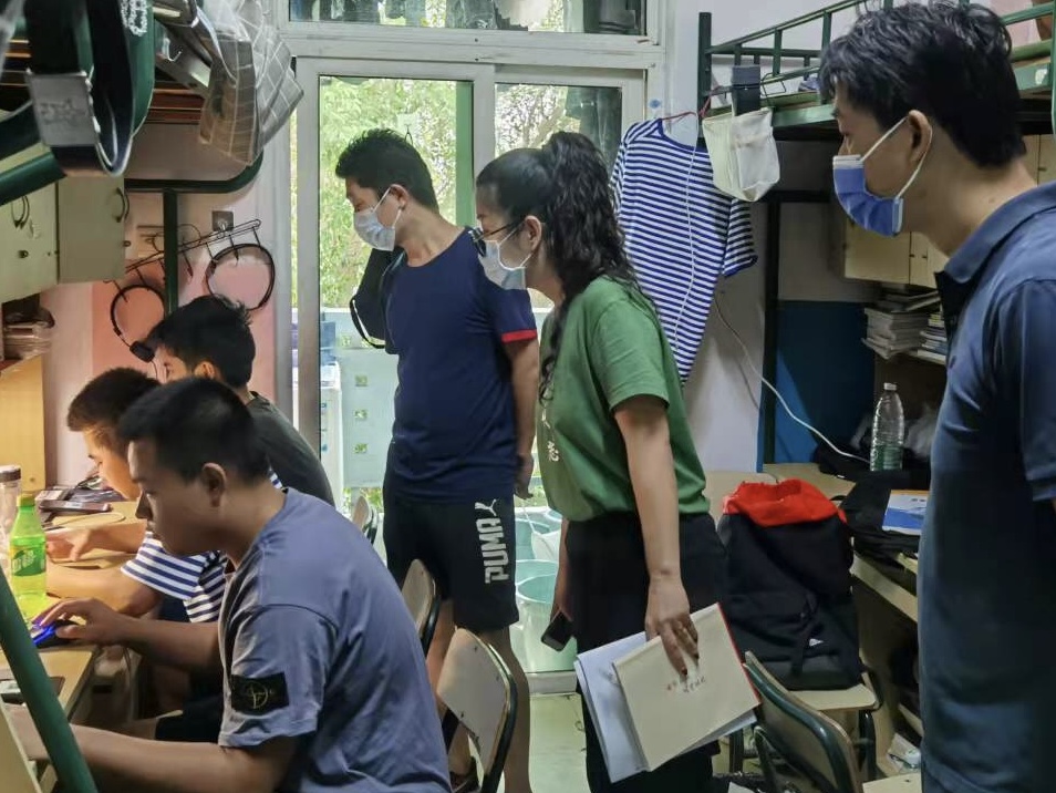 近期,院领导,教学科研办、学工办和专业教研室老师组成几个小分队深入各宿舍区检查线上教学工作情况。从检查情况看,我院线上教学工作有序、有效开展,教师能够认真备课,做好线上教学和学业辅导;学生能够自觉进行在线学习、用好在线课程资源,并以宿舍为单位及时开展学习讨论,营造和谐的学习氛围。